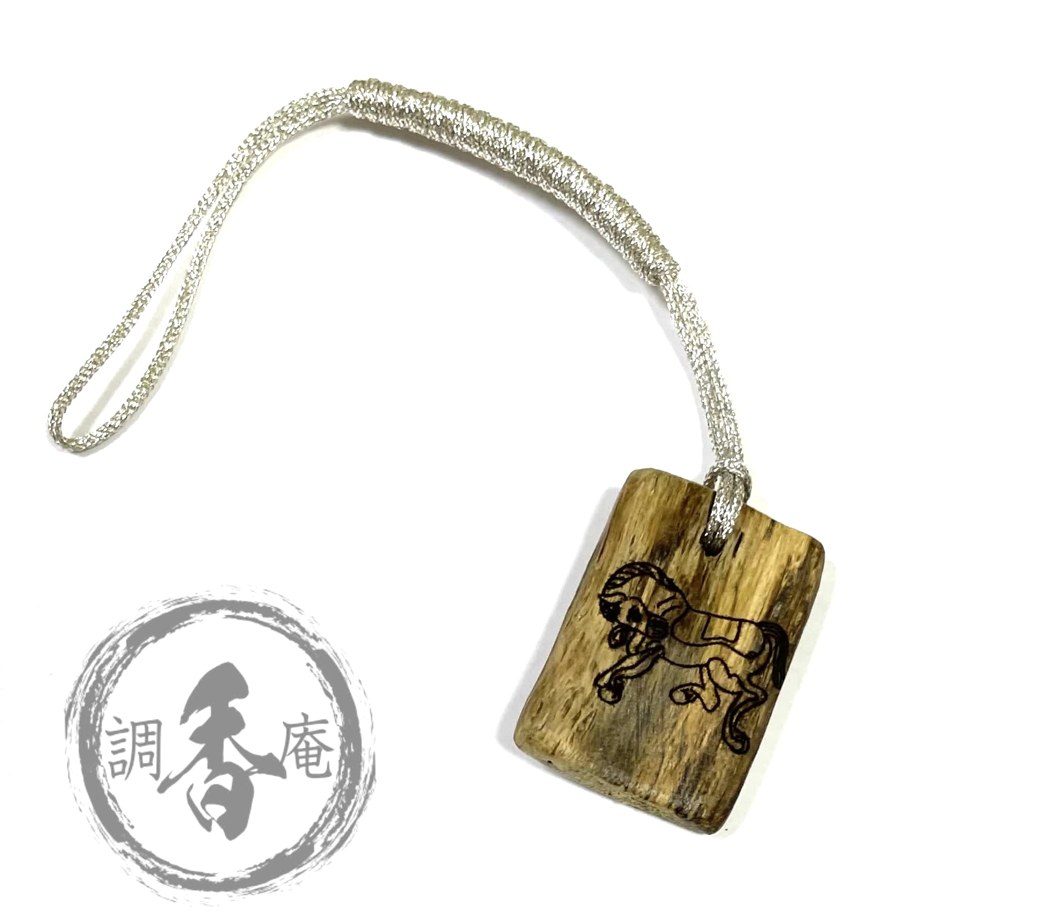 極上沈香「黒タニ」を使用した贅沢なストラップ。干支(午)をレーザー彫りの限定品。