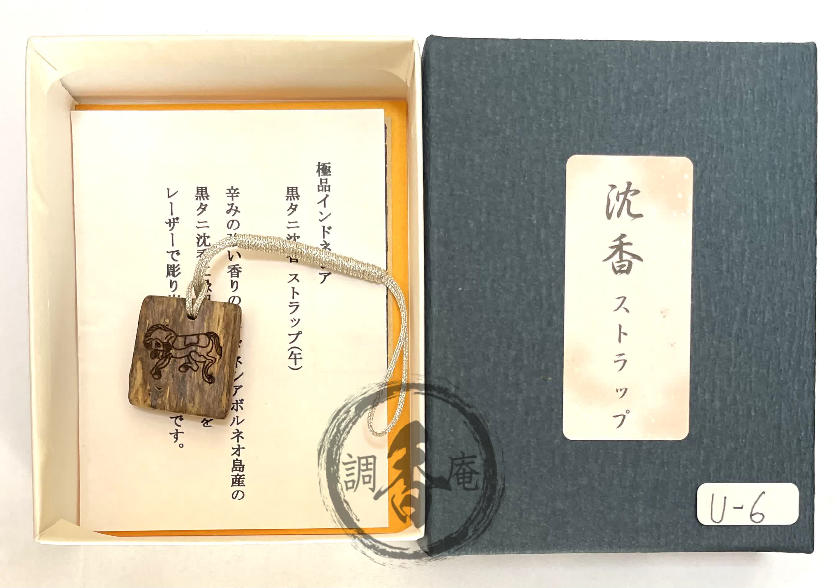 辛味の香りが特に素晴らしい極上タニ沈香「黒タニ」をそのまま用いて贅沢なストラップを作りました。黒タニの中央部分に本年の干支・午をレーザー彫りした限定品でございます。