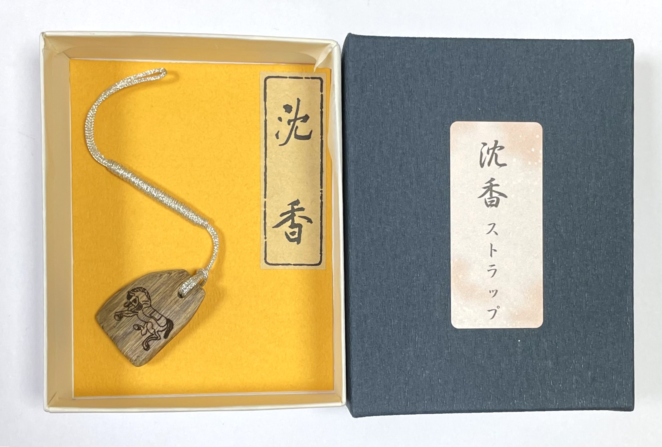 辛味の香りが特に素晴らしい極上タニ沈香「黒タニ」をそのまま用いて贅沢なストラップを作りました。黒タニの中央部分に本年の干支・午をレーザー彫りした限定品でございます。